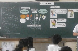 今日のテーマは野菜で、野菜を食べることの大切さについて学習しました。