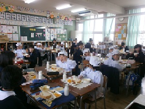 写真は1・6年生です。1年生は「6年生のパン大きい〜」「6年生、たくさん食べていてすごい!」と驚いていました。6年生も「頑張って食べてね」と優しく声をかける姿が見られました。