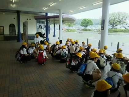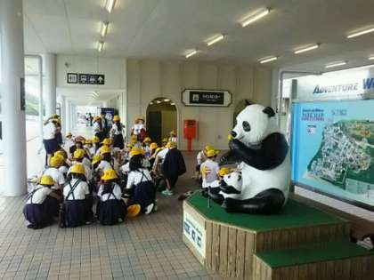 アドベンチャーワールドに到着です。雨は幸いにもやみました。いよいよ活動開始です。