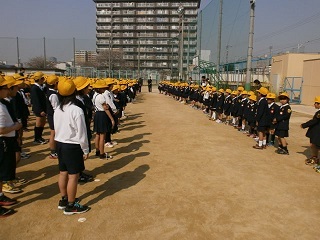 1年生と2〜6年生が初めて顔を合わせました。児童代表で、6年生が歓迎のことばを送りました。1年生も元気よく、「よろしくおねがいします!」と声をそろえていました。