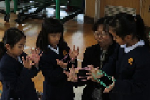1年生が講堂で、地域の方に、昔の遊びを9つ教えていただきました。初めてするものもたくさんあり、子どもたちはとても楽しそうに遊ぶことができました。初めと終わりの挨拶も、「おねがいします。」「ありがとうございました。」と言うことができ、1年生としての成長を感じ取ることができました。