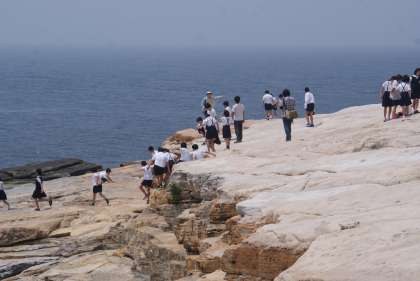 千畳敷では理科の授業が行われ、何千万年もの時間をかけて地形が自然に作られたことを学習しました。教科書の写真ではなく本物を見ながら学習することで、子どもたちの心にも深く残ったことと思います。