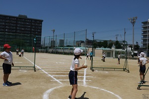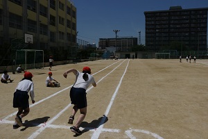 5年生はソフトボール投げ、50m走をしていました。気温が高く、汗をかきながら取り組んでいました。