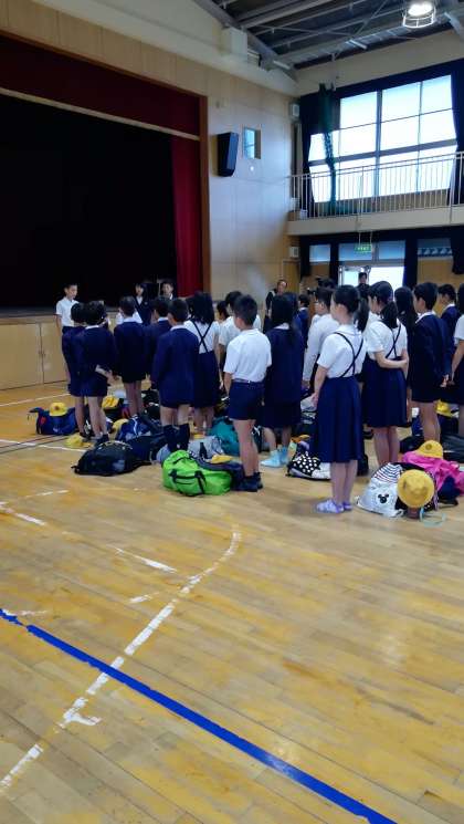 たくさんの保護者の方、教職員に見送って頂き、全員そろっての出発です。いってきます。