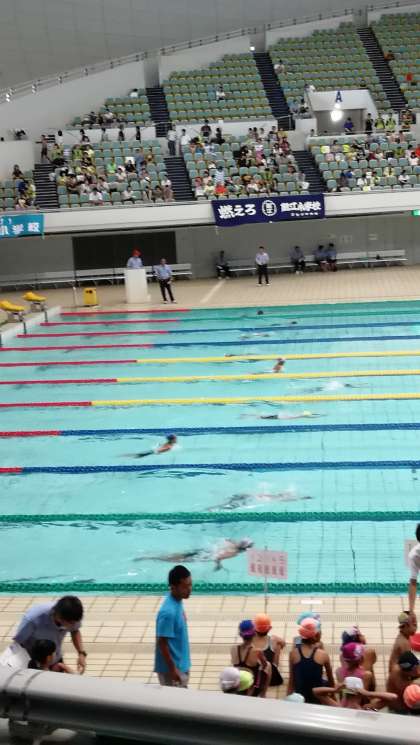 参加した子どもたちは、大きな公式プールで力一杯泳いでいます。