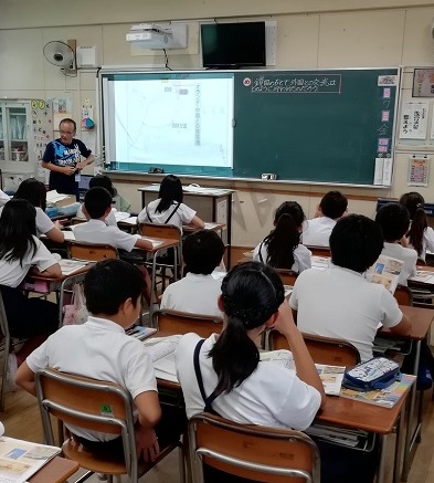6年生の社会は日本の歴史の学習です。スクリーンに投影された地図を見ながら外国と日本との関係について学習していました。