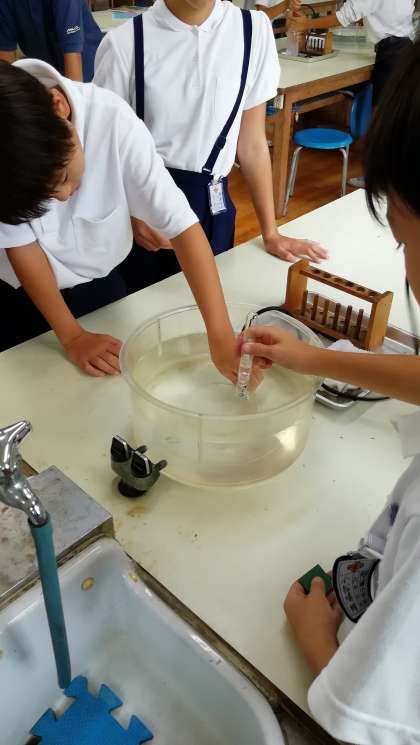 今日の理科の学習は、水溶液の性質について実験をして確かめました。