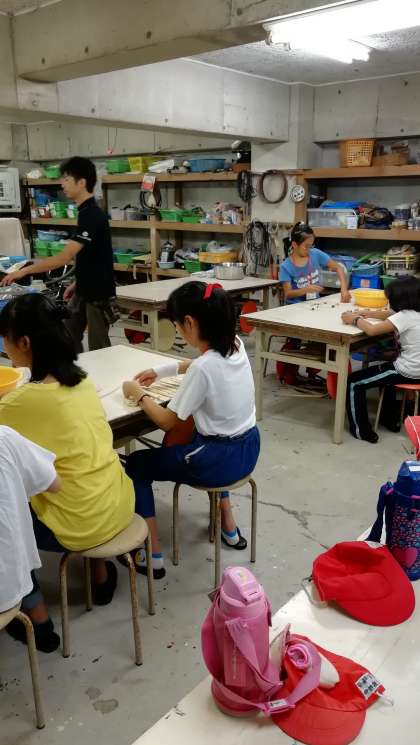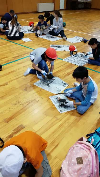 草木染めと焼き板の体験をしています。