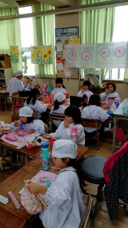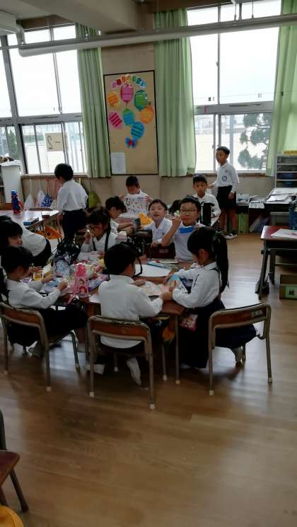 楽しみにしていた校外学習でしたが雨で延期になり、教室でお弁当をいただきました。普段とはちがうお昼でした。