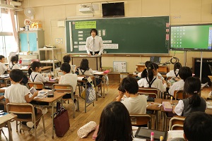 2年生の算数では今「かけ算」をしています。子ども達が自分で撮ってきた写真を使ってかけ算の式をつくり、タブレットを使って話し合いました。