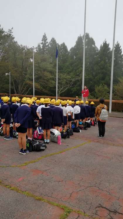 国立曽爾少年自然の家に着きました。自然の家の方と一緒に入所式をしました。そのあと、場所を変え、先生から館内の説明がありました。