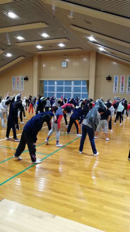 朝のつどいに参加しました。宿泊を共にする団体のみなさんと交流する場です。体験したことの発表してからラジオ体操をしました。そのあと、先生から今日の予定を聞きました。