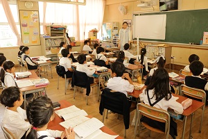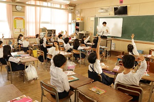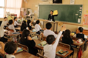 2年生は、算数でした。三角形の図形について、学びました。たくさん手があがり、自分の意見を言えている子が多かったです。