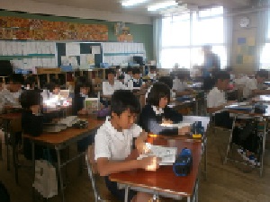 今週一週間は読書週間です。図書委員会の児童が紙芝居の読み聞かせをしたり、年に1度の「読書週間クイズウォークラリー!」をしたりします。クイズウォークラリーとは、学校内に掲示されているクイズ(本を読めば分かるクイズ)を解いて回って、紙に書き、読んだ本の感想も書いて提出すれば、スペシャルチケットがもらえるという、児童が楽しみにしている行事です。初日から大勢の児童がクイズを解いて回る姿が見られました!読書週間のこのような行事をきっかけに、読書が好きな児童が増えてくれることを願っています。