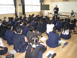 6年戦争体験聞き取り学習」のために、地域にお住いの方にお越しいただき、お話を伺いました。戦中・戦後に食べ物が無く、口にできる物なら何でも食べたというお話や、終戦の年の3月に受けた空襲の時の様子を、体験された方にしかできない描写の絵をみせてくださりながら語っていただきました。「戦争にいいことは何もない」と繰り返しおっしゃっていて平和の大切さを改めて思いました。