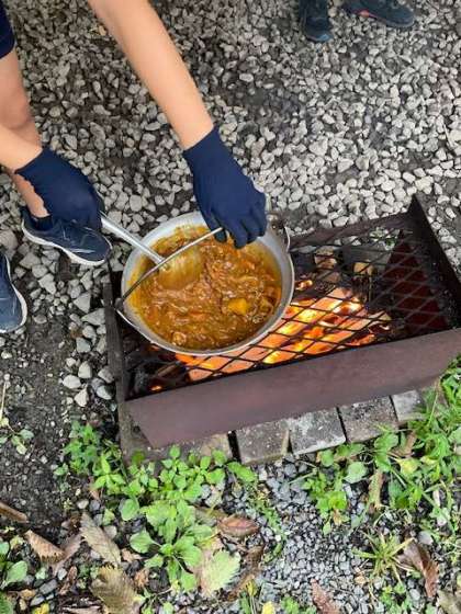カレー作りでは、班の皆で協力して火起こしから頑張りました!