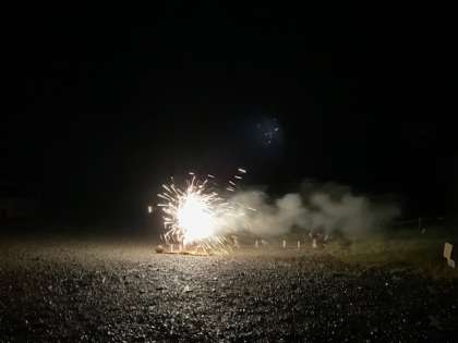 その後、小雨になったので、外に出て花火を観ました。花火が上がるたびに、大きな歓声があがり、子どもたちの思い出に残るような体験でした!!