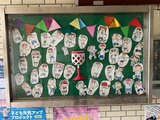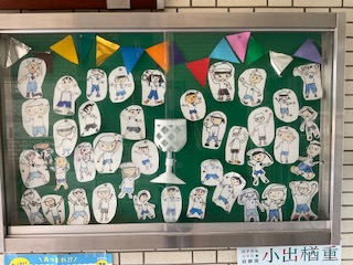 運動会に向けた掲示物が飾られています。どの学年も運動会に向けて張り切って練習しています。