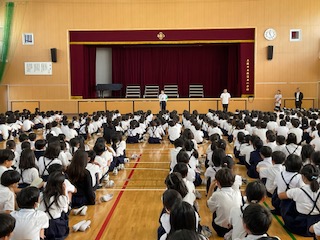 不審者が侵入した場合の子どもたちの動きを確認しました。対峙した教職員の動きにも指導をして頂きました。最後は講堂で警察の方からお話をしてもらいました。保護者の皆様には、来校の際に保護者証のご提示を必ずお願いしたいと思います。よろしくお願いいたします。