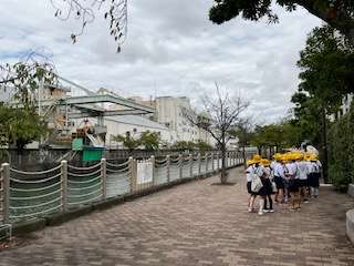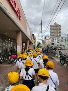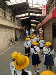 商店街やイズミヤ、駅、郵便局、日新製糖をみんなで周り、場所の確認をしていました。次はグループでの校区探検をおこなう予定です。