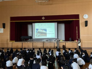 ウェルネオシュガーさんに来ていただき、工場の生産ラインや砂糖のヒミツについて学習しました。子どもたちは、興味津々でお話を聞いていました。