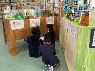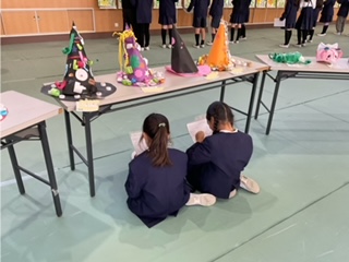 異学年の作品を真剣に見つめ、素敵なところや工夫しているところなどを見つけていまし