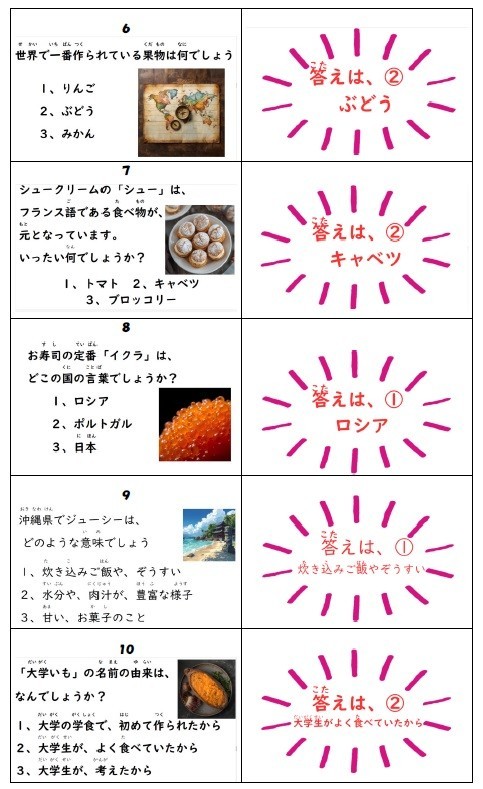 給食委員会(6年1組)作成の「食べものクイズ」を紹介します。