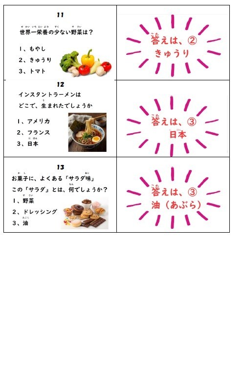 1月28日(水)給食週間 食べものクイズ