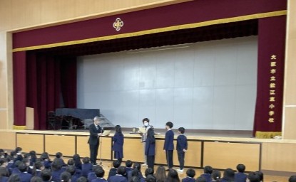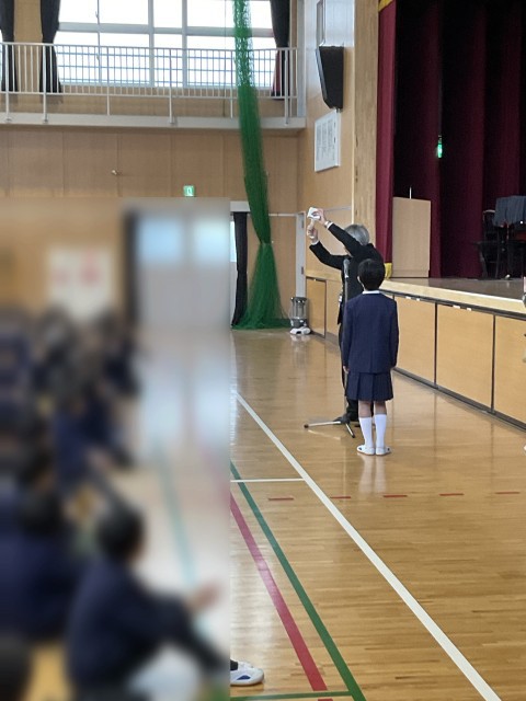 夏休みのMOAの作品に応募した児童がたくさん表彰されました。また、おおくの児童が表彰されたことで、学校も全国の中で6校のみの表彰を受けました。これを機にますます芸術への興味関心が深まることを期待しています。また、先日の区民マラソン大会で見事2位を獲得した児童も表彰しました。全校児童からの拍手を受けました。よく頑張りました。