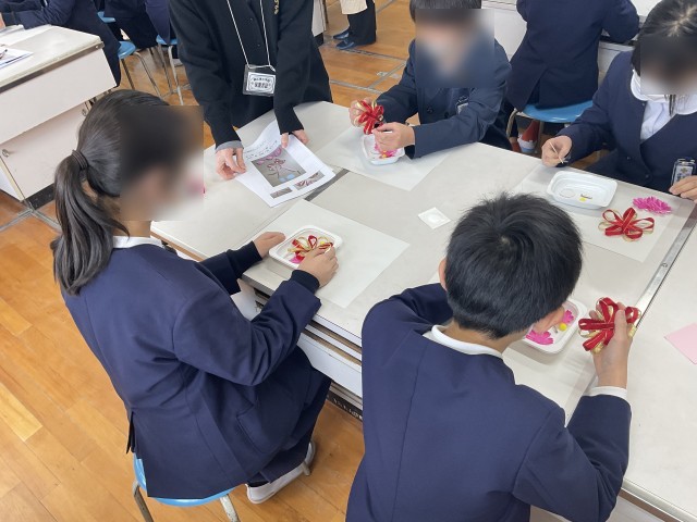 6年 コサージュ作りの様子