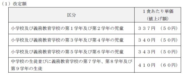 令和8年度からの学校給食費を下記のとおり取り扱いますので、お知らせします。