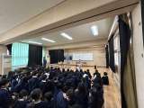 休み時間に地震がおきたことを想定して避難訓練を行いました。 又、同時に火災もおき...
