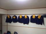 朝食を済ませ、部屋の片付け掃除です。ある部屋では見事に標準服の上着と帽子を整えて...