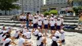 2回戦は風船割りです。足首につける風船を膨らますのに一苦労。自分の班の風船がたく...
