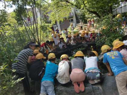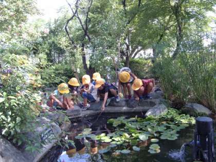 みんなで池をのぞきこんで・・・・