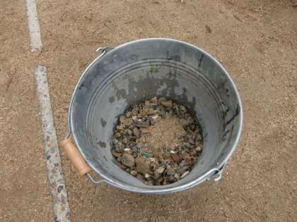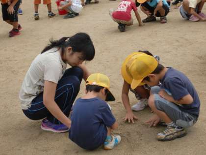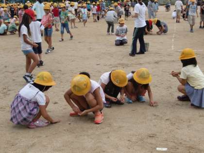運動会では裸足で行う種目もあります。転んでしまうこともあるかもしれません。安全に運動会が行えるよう、目を凝らして小石を探し、バケツに集めました。