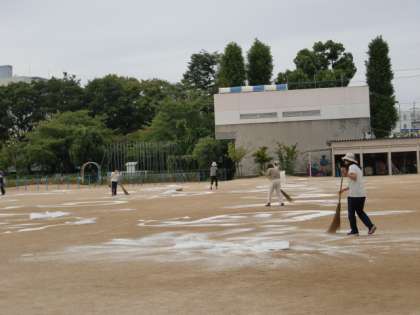 運動会に向け、全教職員で「にがりまき」をしました。