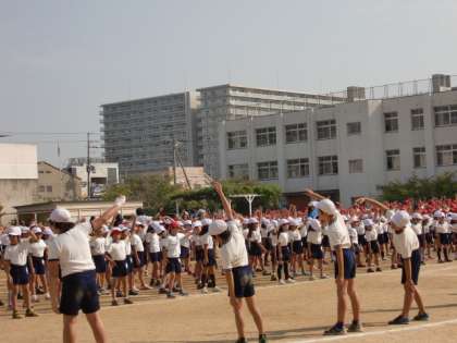運動会練習もいよいよ大詰め。今日の1時間目は、開会式とラジオ体操、応援団の全体練習を行いました。