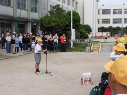 出発式では、「元気いっぱい行ってきます」という力強い児童の言葉があり、一路、ハチ高原へ。