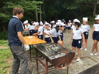 つかまえた魚に塩をふり、宿舎の方が焼いてくださいました。