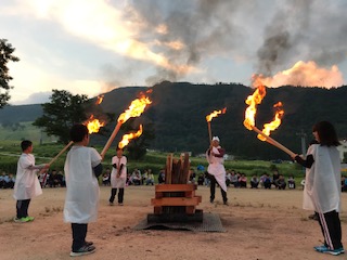 山から火の神様がおりてこられ、火を分けていただきました。