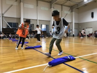 スプーンにピン球をのせて、落とさないように気をつけながら.次の人にバトンをつなぎます!