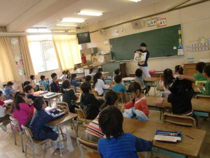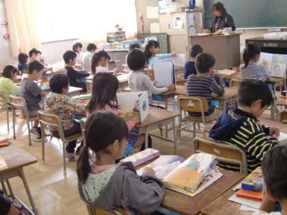 1年生にも、朝読はすっかり定着し、時間になると、自分で好きな本を読み始めます。担任の先生に、読み聞かせをしてもらっている学級もありました。