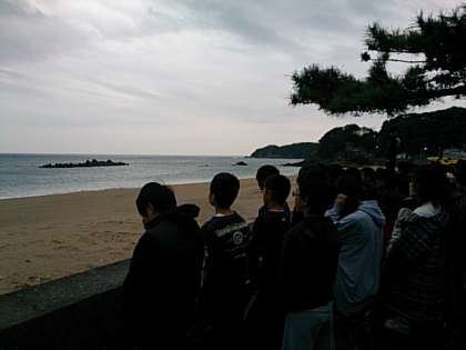 朝会、体操の後は浜辺の探索です。波の音を聴きながら、みんなどんなことを思ったでしょうか?