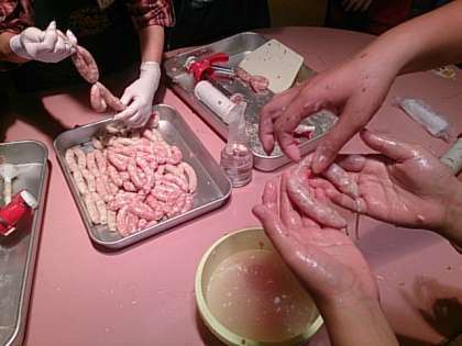 作りたてウインナーを試食させてもらいました。自分たちで作ったものは、やっぱり格別でしたね。