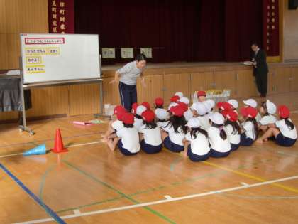1年4組担任の高橋教諭が、体育科の研究授業を行いました。「表現あそび」の単元で、いろいろな動物に変身し、体を動かしながら特徴をとらえて表現しました。