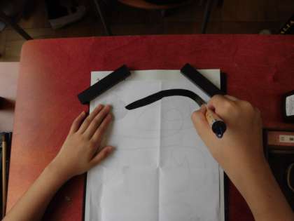 3年生が毛筆に挑んでいます