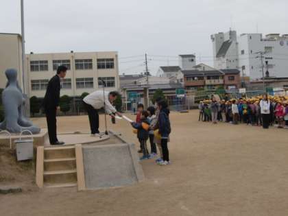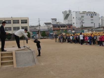 冷たい風が吹くなかでの児童朝会でしたが、みんな姿勢を正して先生方の話が聞けていました。
