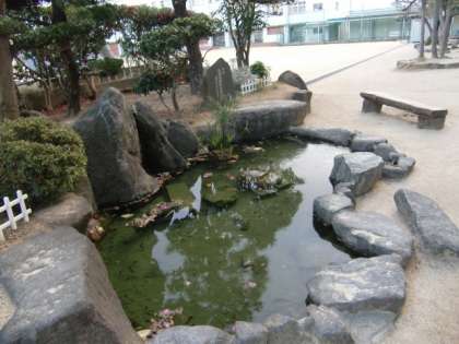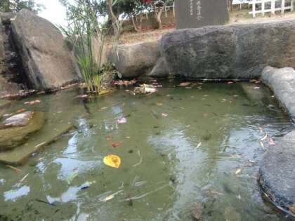 昨日は水たまりだけでしたが、今日は亀池も凍りました(えの森の池は凍っていません)。水面に散ったサザンカや椿の花びらが、氷に閉じ込められています。亀やメダカたちは、きっと凍えていることでしょう。