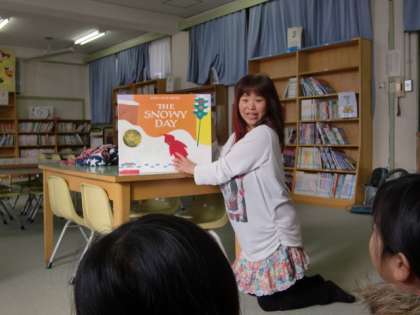 キーツ作「THE SNOWY DAY」、日本でも「ゆきのひ」として大変有名です。語ってくださったのは地域で英語を教えておられる方ですので、発音も表現力も素晴らしく、子どもたちは内容をしっかり理解できていました。